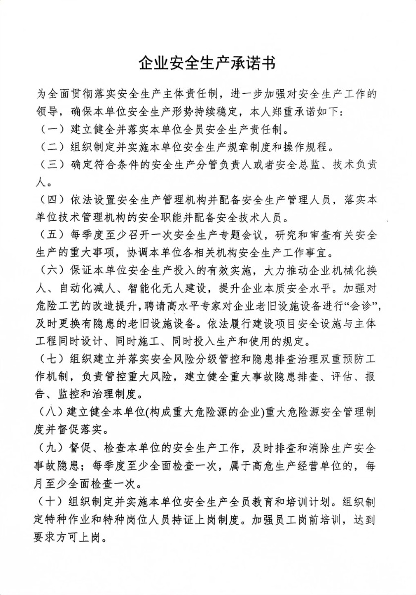 企業(yè)安全生產(chǎn)承諾書
